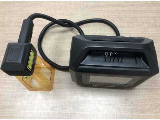 Zasilane bateriami, wygodnie przenośne narzędzie do znakowania laserowego z ochroną bezpieczeństwa chroniącym obszar znakowania. Moc oznaczenia 20W, pole pracy 110 x 110 mm (*zmienne w zależności od zamontowanego obiektywu). Zintegrowany komputer projektowy Linux z 7" ekranem dotykowym i interfejsem USB 2.0 do transferu danych. Chłodzenie powietrzem, zasilanie 220 V, absorpcja 300W, do 3 godzin pracy baterii.