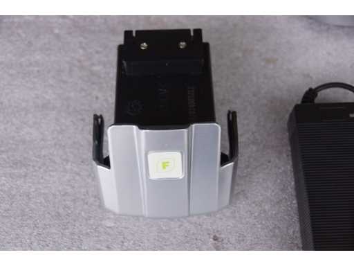 Battery strapping machine for polyester strap with vibration welding. Designed to apply high tensions to the strap, it has a maximum tensioning capacity of 2800 N expressly designed for polyester, PP or PET strapping, strap width from 13mm to 16mm, thickness 0.5 - 1.2 mm. It guarantees excellent performance by combining the solidity of the mechanics with the practicality and precision of digital technology. 3.0Aih12VCD lithium battery. Recharge time 90 minutes, strapping cycles for each recharge from 100 to 220. Weight about 3 kg.