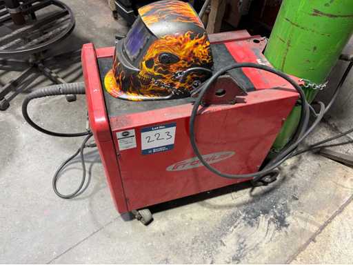Prostownik spawalniczy MIG o mocy 250 A z przewodami i pistoletem, S/No 17340921, z 2 hełmami spawalniczymi, ANR 2452