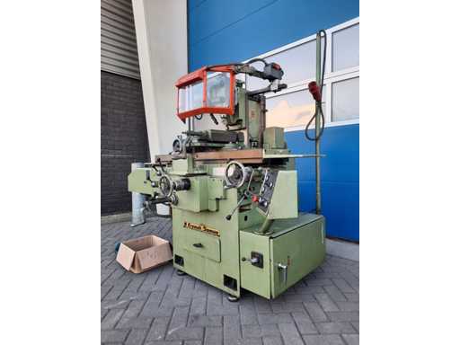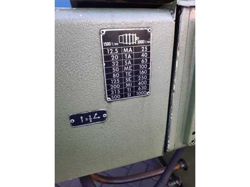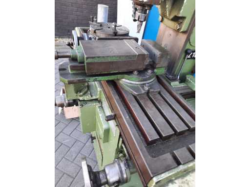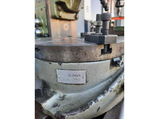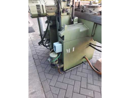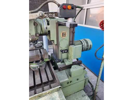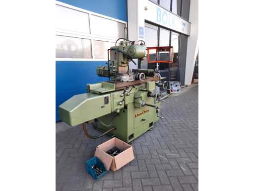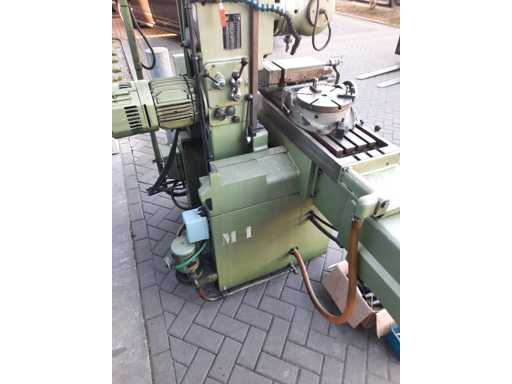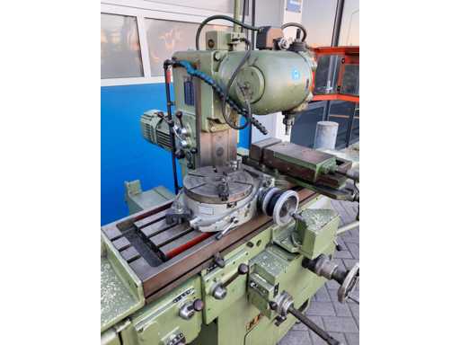 Frezarka H. Ernault Somua Z1C jest w dobrym stanie i kompletna, jak pokazano na zdjęciach. Maszyna jest natychmiast gotowa do użycia. Wyposażony w uchwyt wrzeciona ISO 40, zakres prędkości od 40 do 2000 obr./min i rozmiar stołu 1200 x 300 mm. Przemieszczenia wynoszą 300 mm na osi X, 700 mm na osi Y i 400 mm na osi Z, ze zmienną prędkością na wszystkich osiach i szybkim przesuwem. Maszyna jest zgodna z obowiązującymi przepisami BHP, jest bardzo łatwa w obsłudze i jest w dobrym stanie technicznym, optycznym i ogólnym.