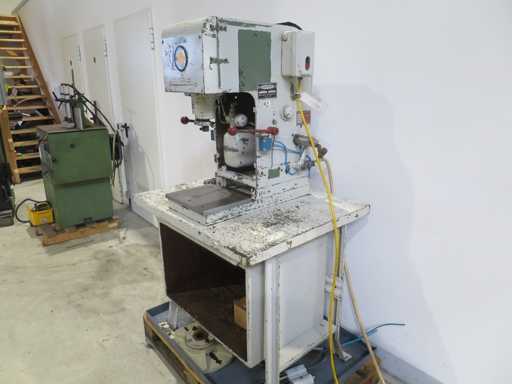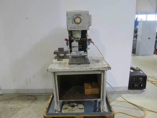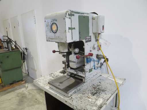 Prasa jednokolumnowa>br> z podstawą stołu>br> różne akcesoria prasowe>br>ciśnienie 2>br>wyrzut 150 mm>br>suw 150 mm>br>powierzchnia stołu 310 x 250 mm>br>moc napędu 2,0 kW>br>ciężar maszyny ok. 0,6 t>br> zapotrzebowanie na miejsce ok. 1,2 x 0,8 x 1,7 m >br>stan: nieprzetestowany (6)