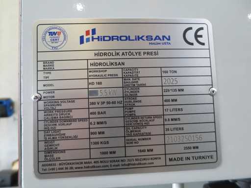 HIDROLIKSAN HD 160 - 1100 Prasa warsztatowa - hydrauliczna