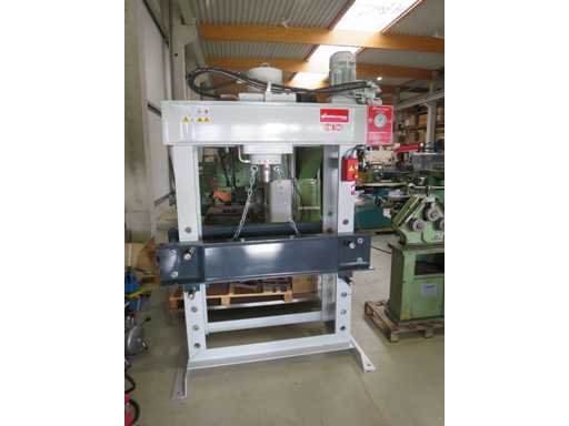 Wysokiej jakości prasa hydrauliczna może być obsługiwana zarówno ręcznie, jak i z silnikiem >br>.>br>cylindry można przesuwać na boki.>br>zawór bezpieczeństwa na końcu cylindra.>br>CE oznaczenia>br>ciśnienie 160 t>br>skok 400 mm>br>przejście między pionami podłużnie/bokiem. 1100 /350 mm>br>wysokość montażu: 900 mm>br>litrlitr> pojemność 15 l>brprędkość od 6,2 mm>brbr>prędkość do 9,8 mm>br>moc silnika 5,5 kW>br>waga maszyny: ok. 1,3 t>br>Wymiary: L x S x H 1,6 x 1,0 x 2,55 m