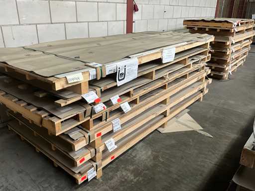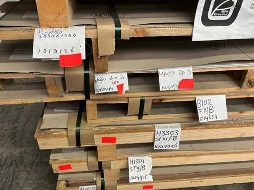W tym następujące rozmiary: 3050x1300x0,8mm, 2800x1310x0,8mm, 3050x1350x0,8mm, składające się z 7 palet i różnych kolorów.
