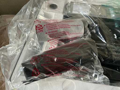 Niezainstalowany sprzęt, z oryginalnym opakowaniem i widocznymi akcesoriami.