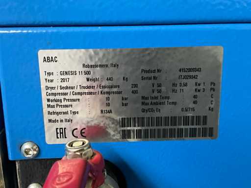 Kompresor śrubowy ABAC Genesis 11-500 z 2017 roku