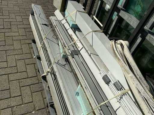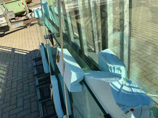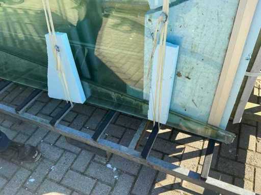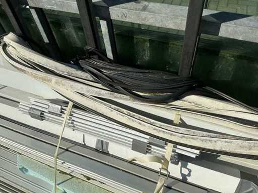 Wyposażony w: pochylone 220-260 cm, aluminiowe, drzwi przesuwne 4x, zamykane szkło, fundamenty drenażowe narożne, kod 9016 kolorów,