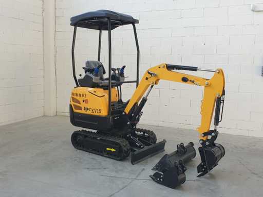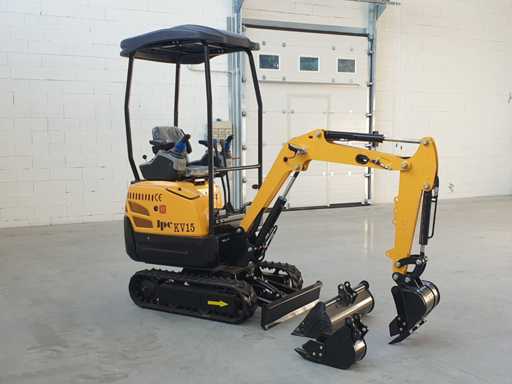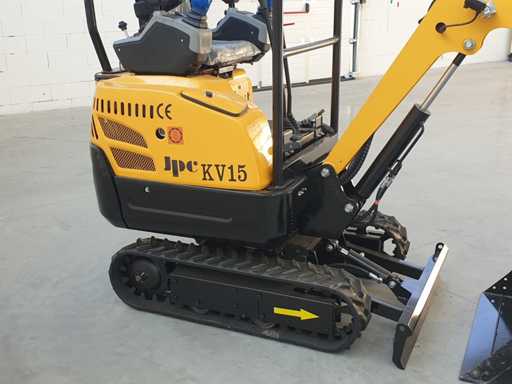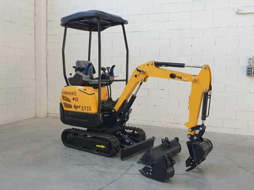 Mini koparka gąsienicowa, model KV15, obrót piątego koła o 360 stopni, joystick do sterowania krawędzią siedzenia, sterowanie elektroniczne, hydraulika młotka, różne akcesoria, wyposażony w standardową łyżkę 400 mm + łyżkę do kopania 200 mm + łyżkę 800 mm, nigdy nie używał 0 godzin