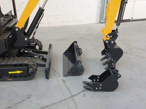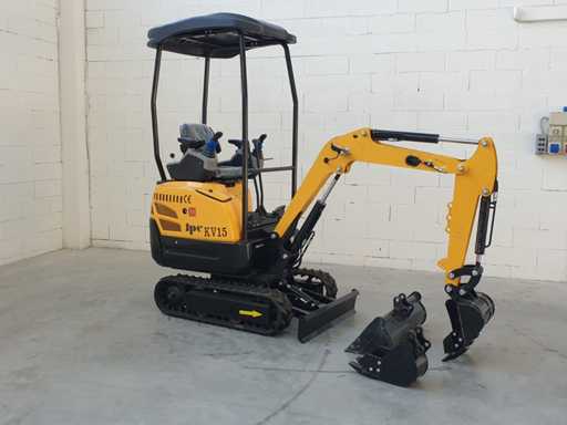 Mini koparka gąsienicowa, model KV15, obrót piątego koła o 360 stopni, joystick do sterowania krawędzią siedzenia, sterowanie elektroniczne, hydraulika młotka, różne akcesoria, wyposażony w standardową łyżkę 400 mm + łyżkę do kopania 200 mm + łyżkę 800 mm, nigdy nie używał 0 godzin