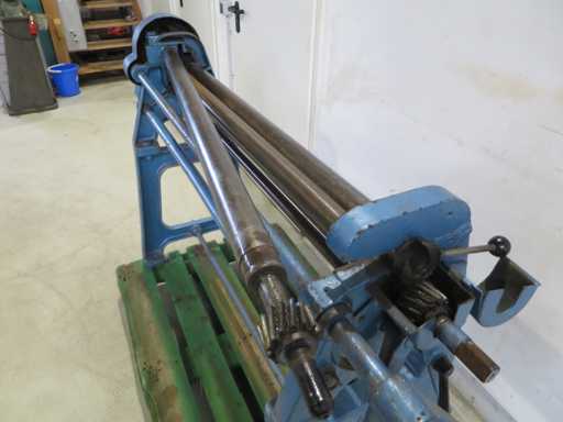Maszyna do gięcia blachy o specjalnych wymiarach: >br> - Pojemność 1050 x 1,5 mm>br> - Średnica rolki 55 mm>br> - Górny wałek wychylany>br> - Waga maszyny 180 Kg>br> Wymagania dotyczące przestrzeni ok. 1,4 x 0,8 x 1,2 mm
