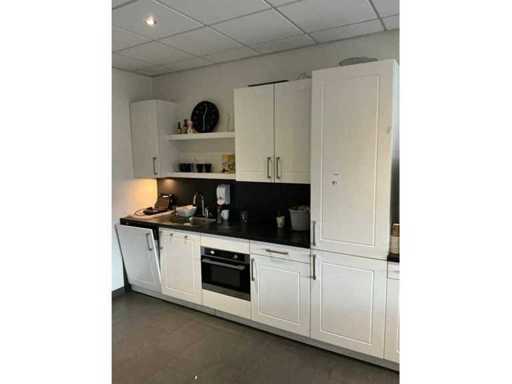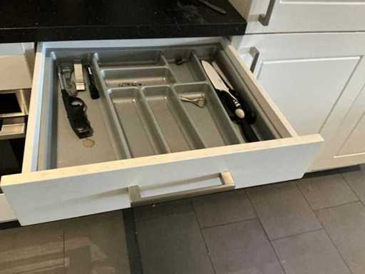 Wyposażony w zlew z kranem mikserowym, wbudowaną zmywarkę AEG, wbudowany piekarnik Etna, wbudowaną chłodziarkę Zanussi oraz różne przybory kuchenne, ekspres do kawy nie był dołączony, o całkowitych rozmiarach około 300x60x235cm. Miedź musi profesjonalnie zakręcić połączenia wodne i kanalizacyjne.