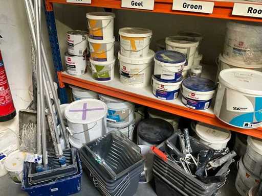 Pomieszczenie kompresorowe: składa się z regałów magazynowych z 2 pionowymi i 8 belkami z różnymi farbami i wiadrami do malowania