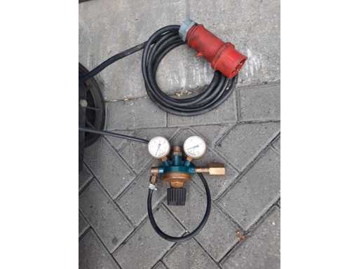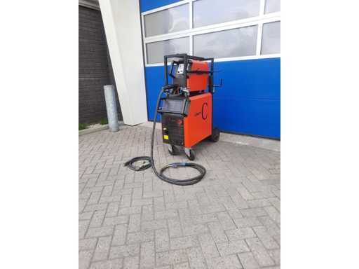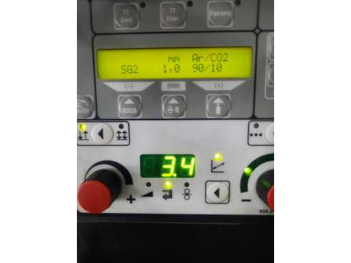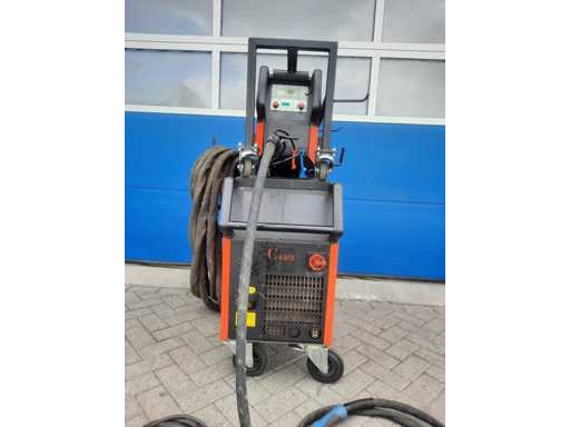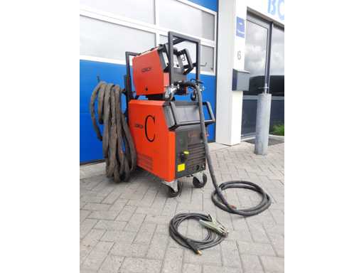 Synergiczna spawarka MIG/MAG CO2 firmy Lorch C4303 jest w dobrym stanie i kompletna, jak pokazano na zdjęciach. Urządzenie jest od razu gotowe do użycia. Wyposażony w maksymalną moc 430 amperów, odpowiedni do stali, stali nierdzewnej i aluminium. Wyposażony w chłodzenie wodne, 4-rolkowy podajnik drutu, 20-metrowy pakiet pośredni i sterowanie synergiczne dla optymalnego komfortu spawania. Zasilany napięciem 380 woltów. Technicznie, optycznie i ogólnie spawarka jest w dobrym stanie i dlatego może być natychmiast użyta.