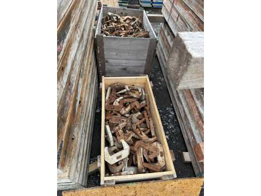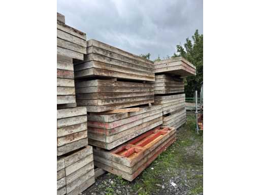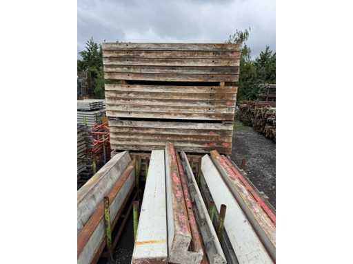 For sale is a complete lot of Meva Mammut wall formwork, consisting of a total of 507 m² of formwork area including inner corners, outer corners, concreting brackets, railing posts and 500 formwork locks.