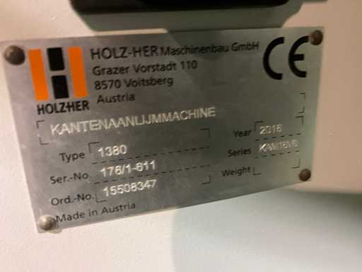 Maszyna do oklejania krawędzi Holzher Lumina 1380 z 2016 roku