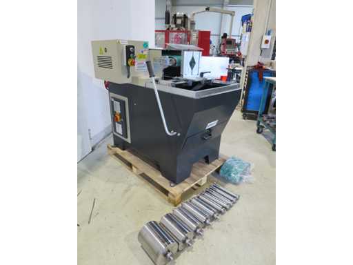 Szlifierka do rur z 11 walcami szlifierskimi: >br>38 - 42 - 48 - 52 - 60 - 74 - 90 - 102 - 116 - 138 - 170 mm>> zakres zaciskania rur 170 mm>br>dokumentacja (angielski)>br>szerokość taśmy 200 mm>br>długość taśmy 1600 mm>br>średnica rury 38 - 170 mm>br>napięcie przyłączenia 400 V>br>brcałkowite zapotrzebowanie mocy 3,0 kW>br>waga maszyny ok. 0,25 t>br> wymagana przestrzeń ok. 1,4 x 0,8 x 1,35 m >br> stan: Nigdy nie używał / nowy (5)