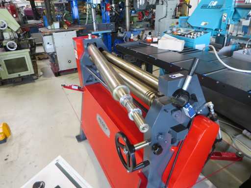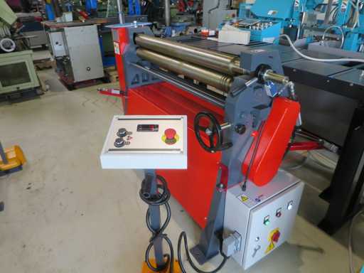 Maszyna do gięcia blachy o specjalnych wymiarach: >br> - Pojemność 1050 x 3,, 0 mm>br> - Wyświetlacz cyfrowy>br> - Walki hartowane>br> - Stożkowe zginanie>br> - Górna rolka obrotowa>br> - Silnik hamulcowy>br> Linia awaryjnego wyjścia z urządzeniem bezpieczeństwa>br>- Dokumentacja w języku angielskim>br>- 400V>br>Szerokość arkusza 1000 mm>br>Grubość blachy 3.brbr 0 mm>br>Szerokość kolumny 1050 mm>br>Średnica górnej rolki 90 mm>br>Całkowite zapotrzebowanie mocy 1,1 kW>br> masa maszyny: ok. 0,47 t>br>Wymiary: ok. 1,7 x 0,8 x 1,35 mm