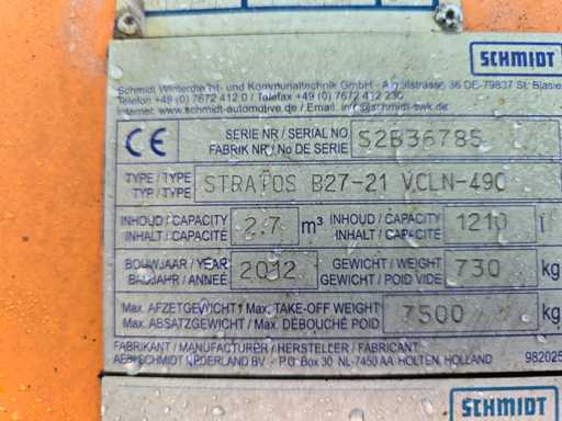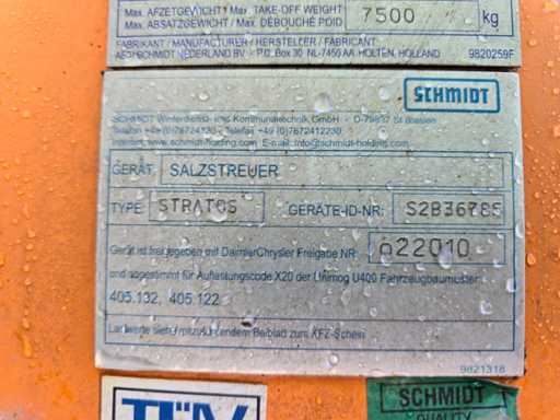 Schmidt Stratos B27-21 salt spreader with conveyor belt.