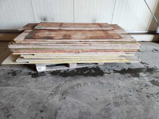 Mixed pallet of used formwork panels - various sizes - multiplex / formlining panels - construction and concrete