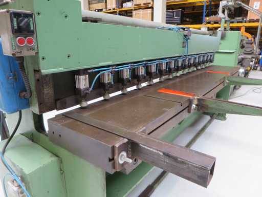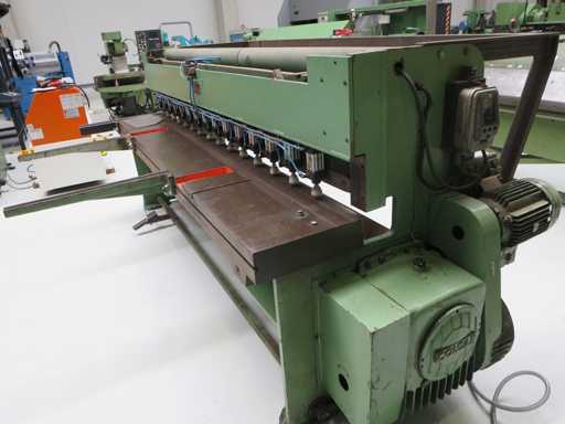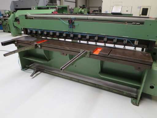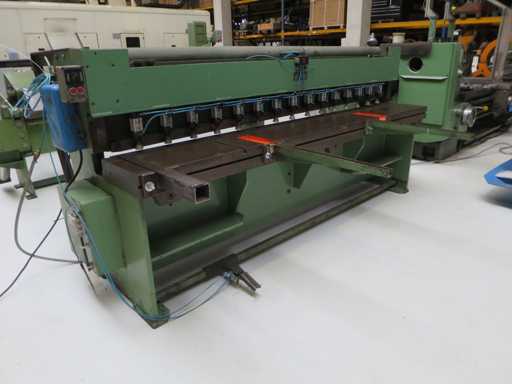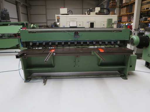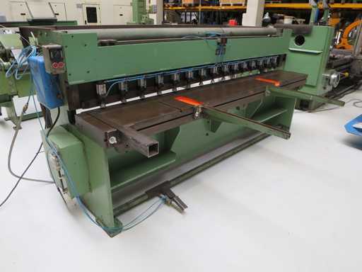 Szerokość arkusza 2500 mm>br>Grubość arkusza 3,0 mm>br>Szerokość podstawy 2550 mm>br>Regulacja kąta cięcia ->pr> rozstaw - regulowany maks. 510 mm>br>Regulacja szczeliny cięcia - mm>br>całkowite zapotrzebowanie na moc kW>br>Waga maszyny ok. 1,8 t>br>Wymiary: L x S x H 3,3 x 1,4 x 1,8 m