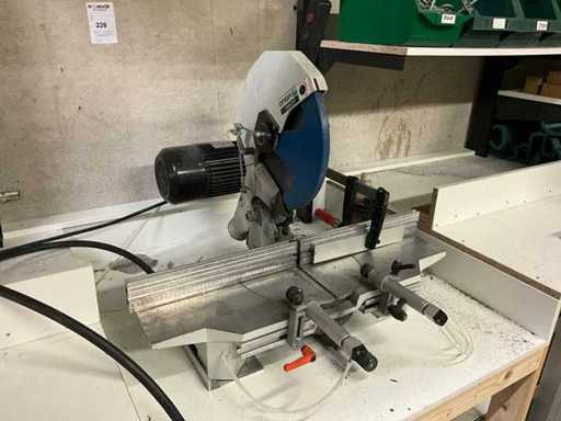 Składa się z pilarki tarczowej OMGA TYP P350F z pneumatycznym zaciskiem na stole piłowym, + 1x szerokość stołu roboczego 4500 mm z różnymi profilami aluminiowymi + elementami montażowymi, + ściennym regałem magazynowym z różnymi elementami montażowymi