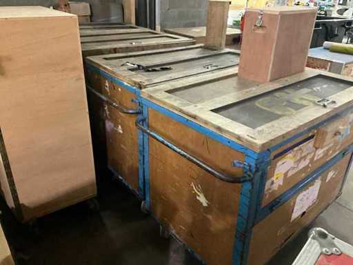 Składa się z około 7 fragmentów mobilnych pudełek magazynowych o wymiarach około 820x1270x1060 mm, +- puste