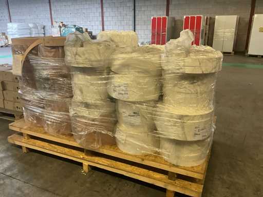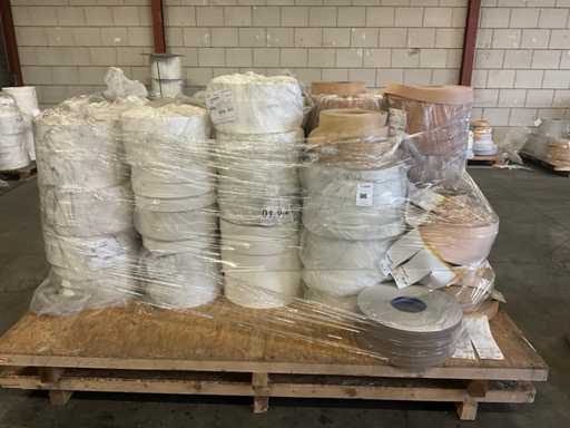 Partia różnych rolek o różnych rozmiarach, na jednej palecie.