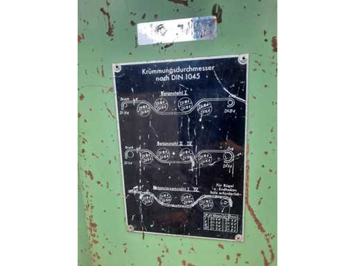 Giętarka do prętów zbrojeniowych Peddinghaus Bifax 32K jest w schludnym stanie i kompletna, jak pokazano na zdjęciach. Maszyna jest natychmiast gotowa do użycia. Wyposażony w spiralę i sterownik nożny, przystosowany do gięcia prętów zbrojeniowych do 32 mm. Zasilany napięciem 380 woltów. Pod względem technicznym, optycznym i ogólnym maszyna jest w dobrym stanie i dlatego może być natychmiast użyta.
