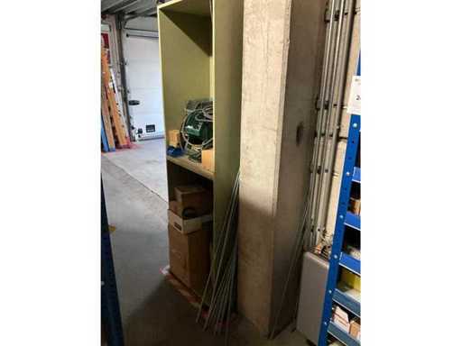 Składa się z odłączanego regału magazynowego + półki MDF z elementami takimi jak, korki udarowe, okrągłe, i moszy, odkurzacze Festool, pręty gwintowane itd...