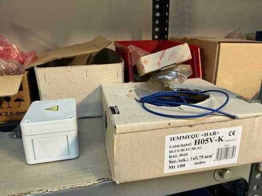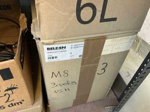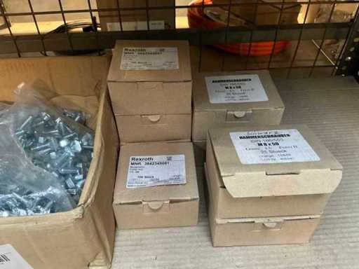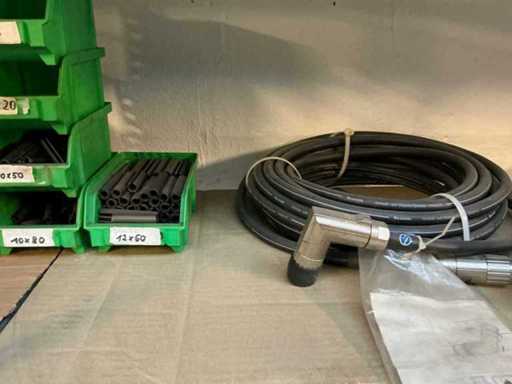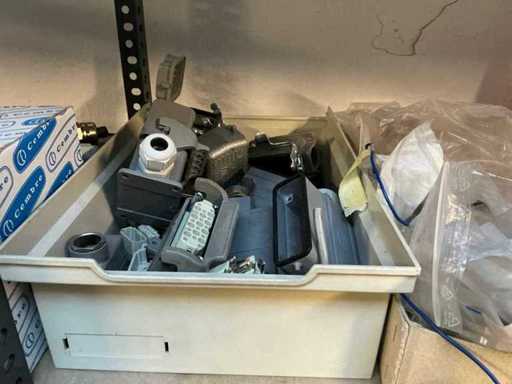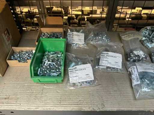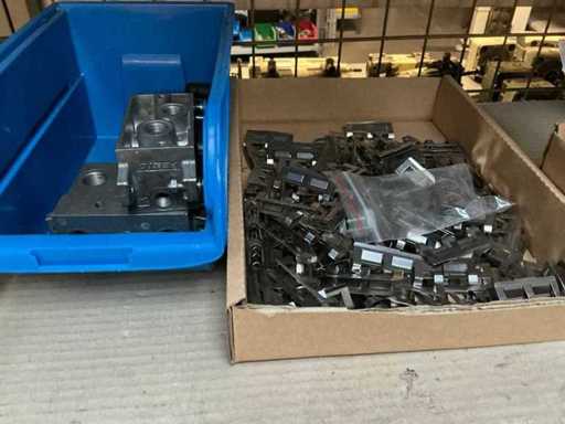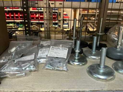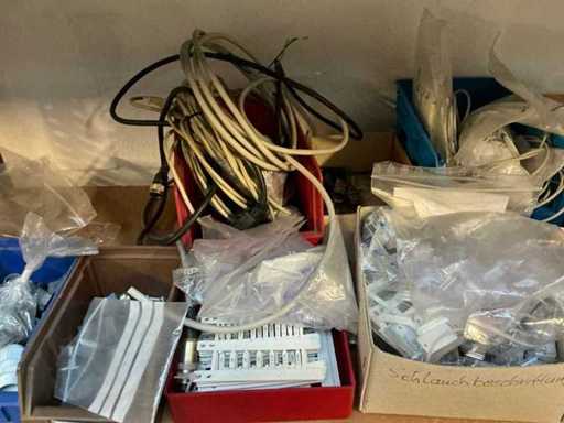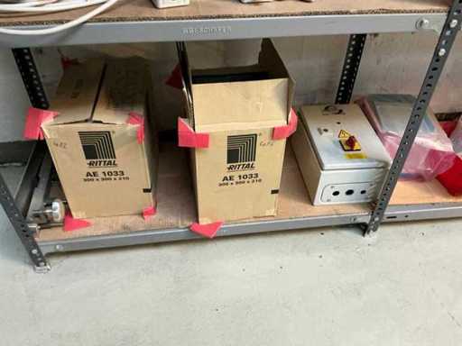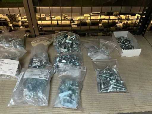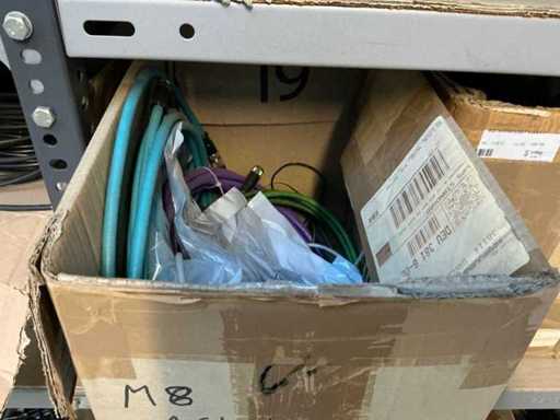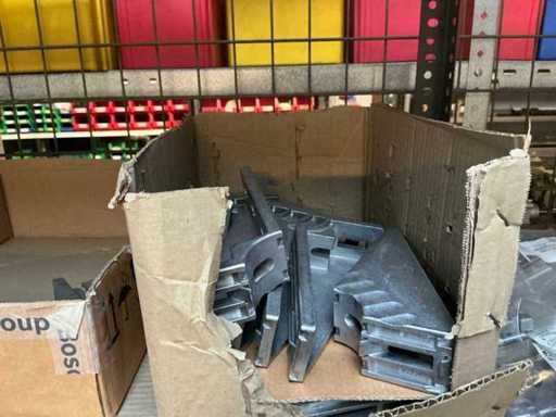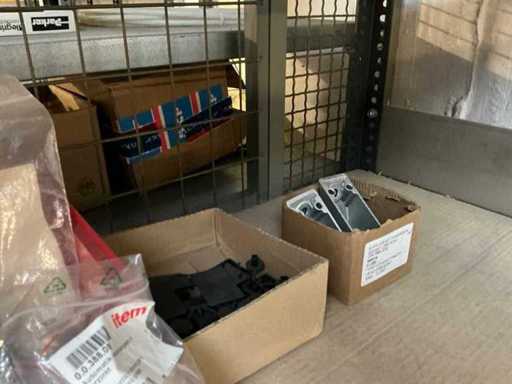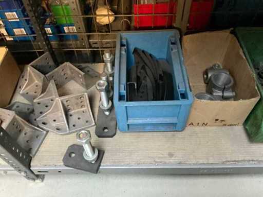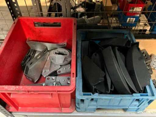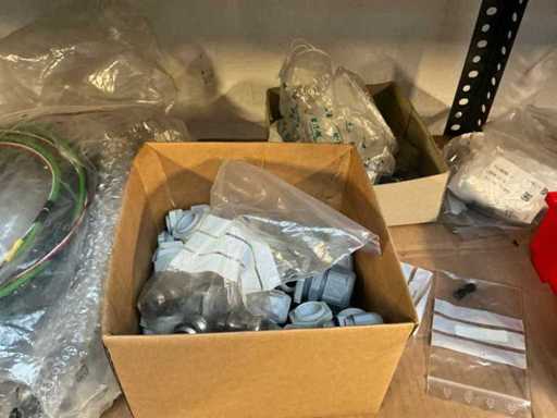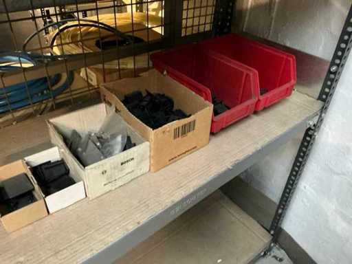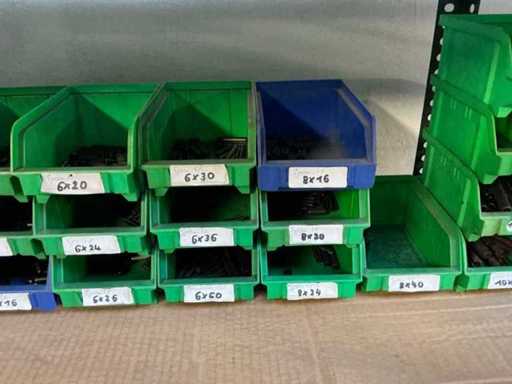 Stojak 1 t/m 4: materiały montażowe Bosch Rexroth; Półka 5: Sworznie zaciskowe, śruby do wbijania, szafy sterujące; Półka 6: Sterowanie i węże; półka 7 t/m 9: Specjalne kable Festo, Belden, Elcon. Abm. Półka na przedział: 100x40x192 cm