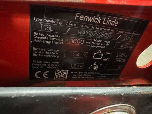 Początkowy ruch 1847 godzin 2016 Linde T16L Pallet Truck Ant Stacker