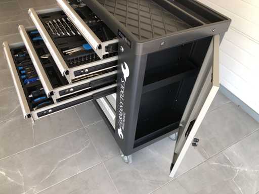 Wózek narzędziowy ze wszystkimi narzędziami jak na zdjęciu, o jakości klucza chromowo-wanadowego, nigdy nie używany i zapakowany w