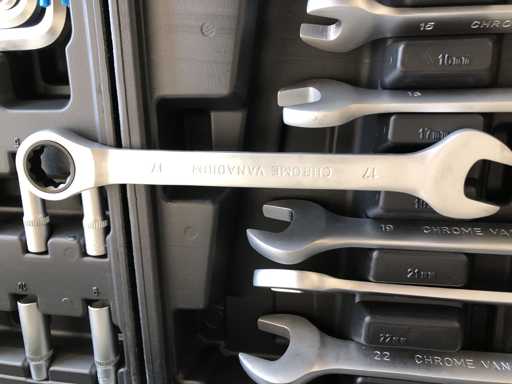 Wózek narzędziowy ze wszystkimi narzędziami jak na zdjęciu, o jakości klucza chromowo-wanadowego, nigdy nie używany i zapakowany w