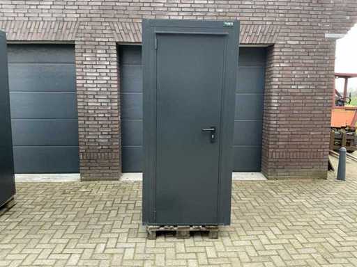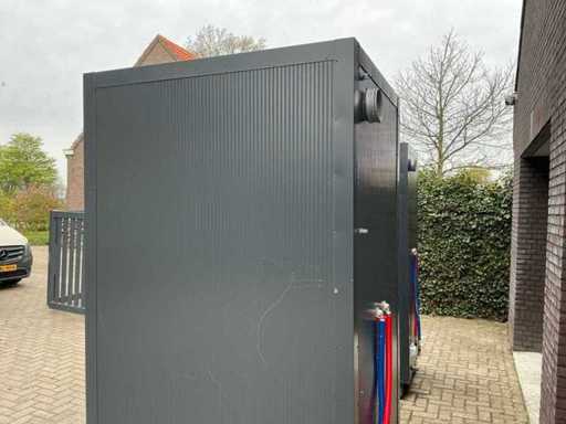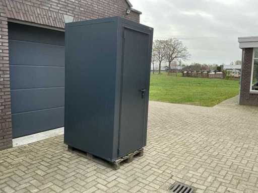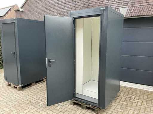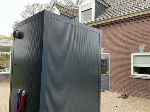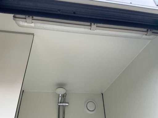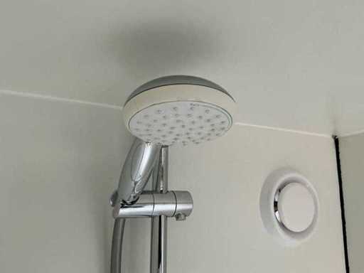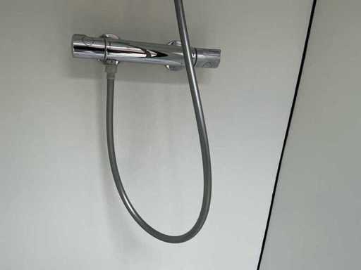 Wyposażona w: kran, termostat, oświetlenie, haczyki do wiszenia, odpływ, wentylację, zamek