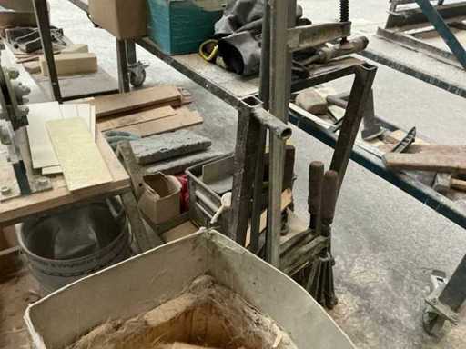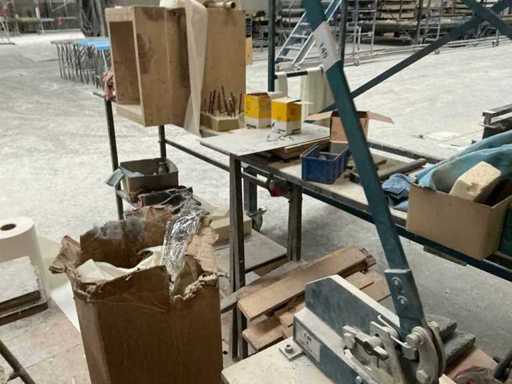 Złożony i włączony ze stołem/ w tym metalowy stojak z zawartością