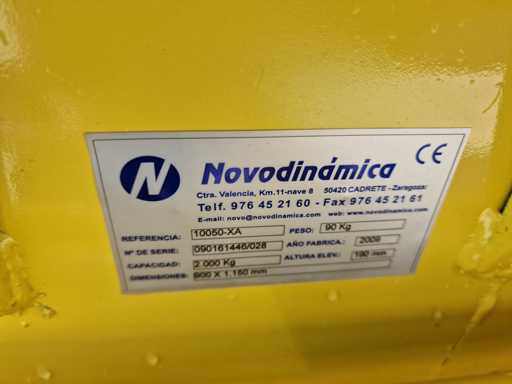 - NOVODINÁMICA 10050-XA – ręczny wózek paletowy: numer seryjny 090161446/028, rok produkcji 2009, ładowność 2000 kg, wymiary widelca 1150 x 900 mm, wysokość podnoszenia 190 mm.
