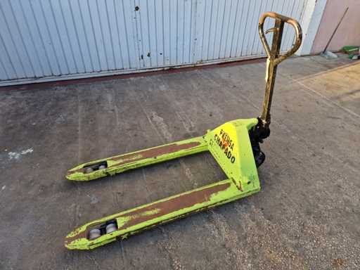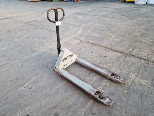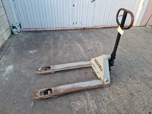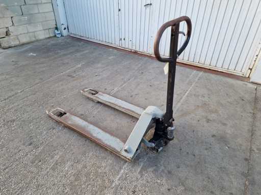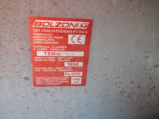 - Ręczny wózek paletowy BONZONI: numer seryjny TSM9611806, rok produkcji 1996, ładowność 2200 kg, wymiary widelca 1150 x 700 mm.