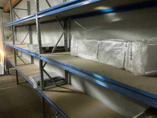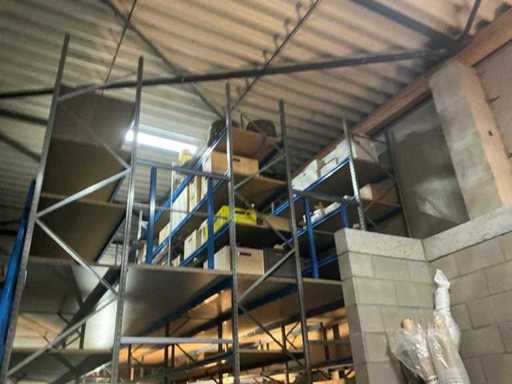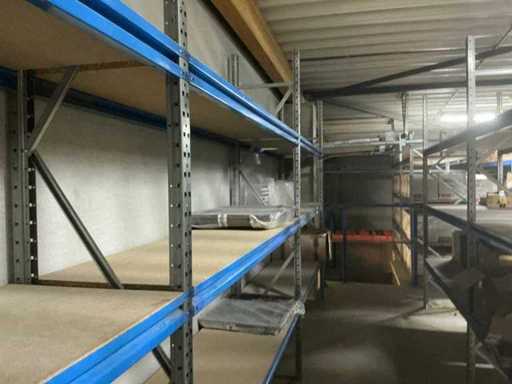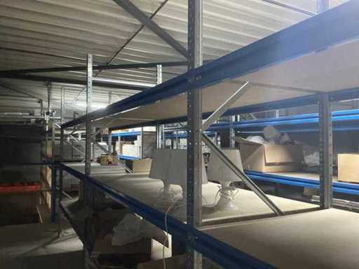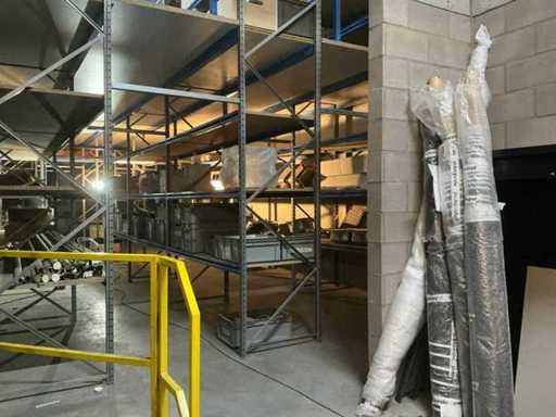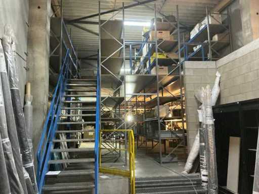 Zbudowany na dwóch piętrach; wyposażona w schody z 15 schodami w siatce; Wymiary słupków: 50/80 x 500 cm; długość belek: 200 cm; w tym zawartość, w tym: partia różnych lamp oświetleniowych, duża partia przedłużaczy, wbudowane zlewy ze stali nierdzewnej i tak dalej; w tym regały paletowe = 3 słupki (110x320cm) oraz 8 belek o długości 270 cm; uwaga: księgowość NIE UWZGLĘDNIA!