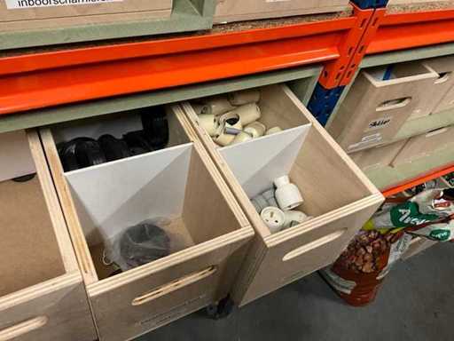 Zawartość obejmuje obrotowe i zamontowane koła, wbudowane korki i przełączniki, wiertarki i głowice frezarskie, nity, okucia drzwiowe, stalowe linki, wiertarki zegarowe, korki itp...