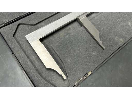 Głębokie wylewki, skok 300 mm • Twarda obudowa • Zweryfikowany Trescal 26/11/2020, ponownie zakwalifikowany 26/11/2021 • Vernier 0,02 mm do pomiarów wewnętrznych.