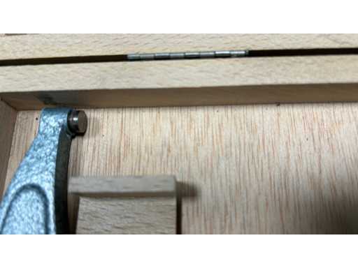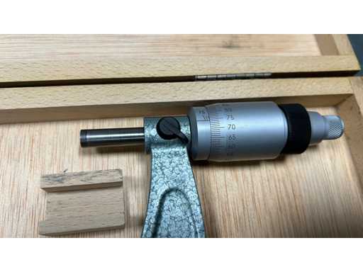 Precyzyjny mikrometr analogowy 0,01 mm • Pojemność 25–200 mm • Wyprodukowany we Francji • Drewniana obudowa z uchwytem i blokadą wrzeciona • Wytrzymały instrument do średnic zewnętrznych.