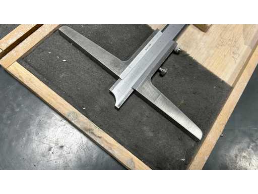 szerokie wylewki do pomiarów głębokości • Drewniana skrzynka • Zweryfikowane przez Trescal 30/09/2020, ponownie zakwalifikowane 30/09/2021 • Precyzyjnie podziałowany vernier.