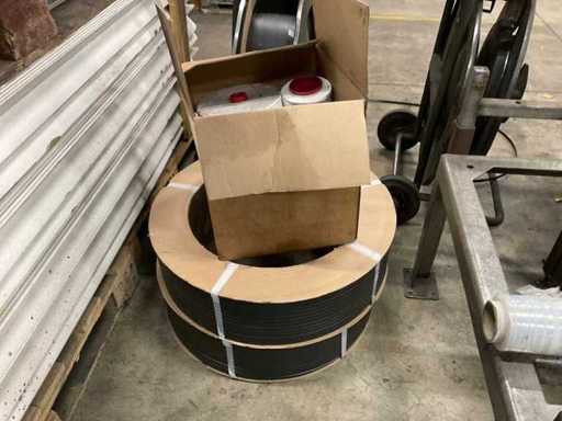 Składa się z: (3x) palet z kartonowymi profilami narożnymi, (2x) maszyn do zaciskania taśm (bez szczypiec blokujących).