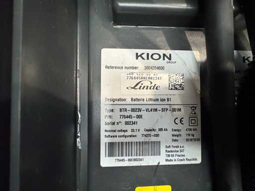 Bateria: LI-ION 23,1V/205Ah/4,736kWh Bateria wyprodukowana w 2018 roku, o napięciu 23,3 V