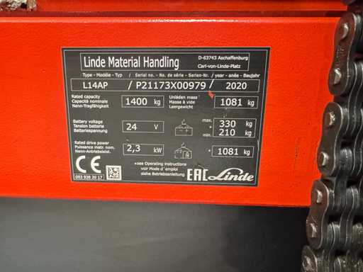 Serwis 2020 +UVV 09/2026 Linde L14AP EVO 1.400kg Wózek paletowy Ant 4.617 godzin
