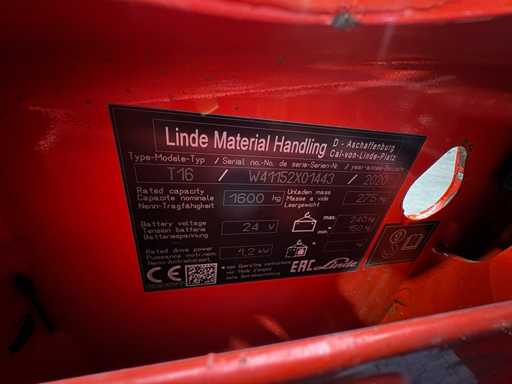 Serwis 2020 12/2026 Linde T16 1 600 kg Paletowy wózek Ant Stacker Początkowy ruch 1 789 godzin
