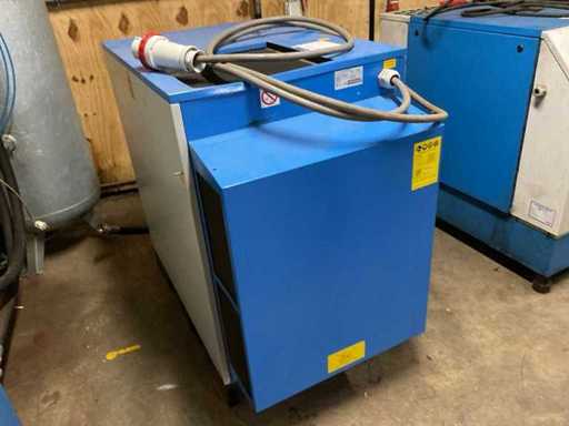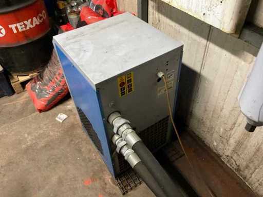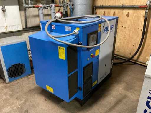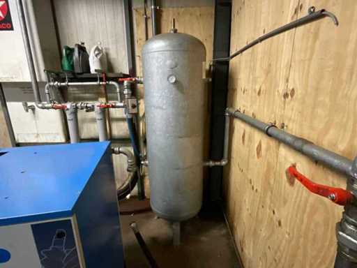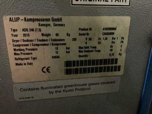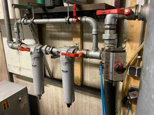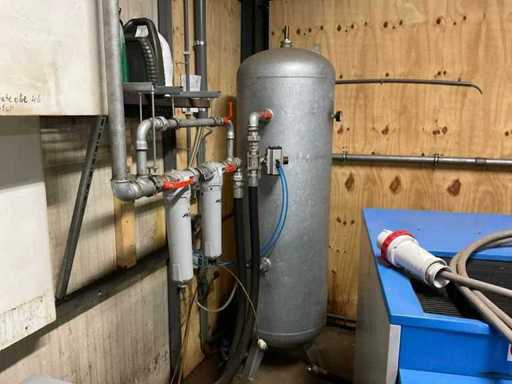 Maksymalna pojemność 13 barów. W tym suszarka powietrza Alup ADQ, rok budowy 2013, podłączenie 230 V, zbiornik buforowy 500 litrów maksymalnie 11 barów, filtry powietrza sprężonego