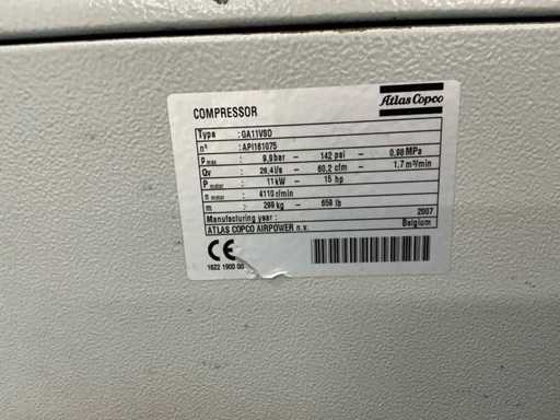 Sprężarka śrubowa Atlas Copco GA11VSDff z 2007 roku
