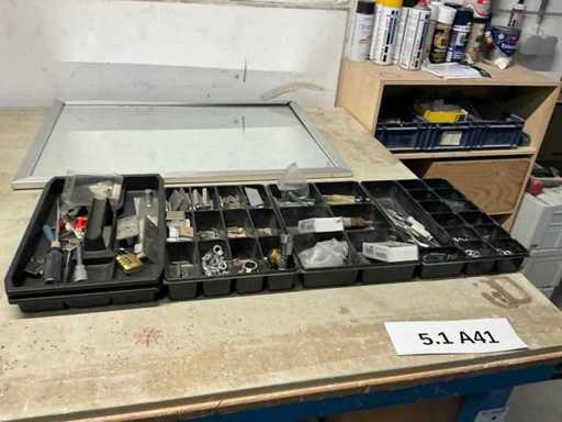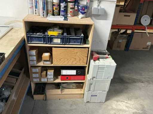 Zawartość obejmowała: małą partię elementów złącznych, szafkę na przegródki, 3 futerały maszyn Festool,