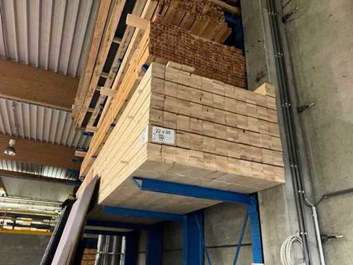 Do rozmontowania jest przykręcany do podłogi i ściany, a zawartość składa się z dużej partii drewnianych listew o wymiarach 45x22 mm + 22x95 mm + drewnianych palet